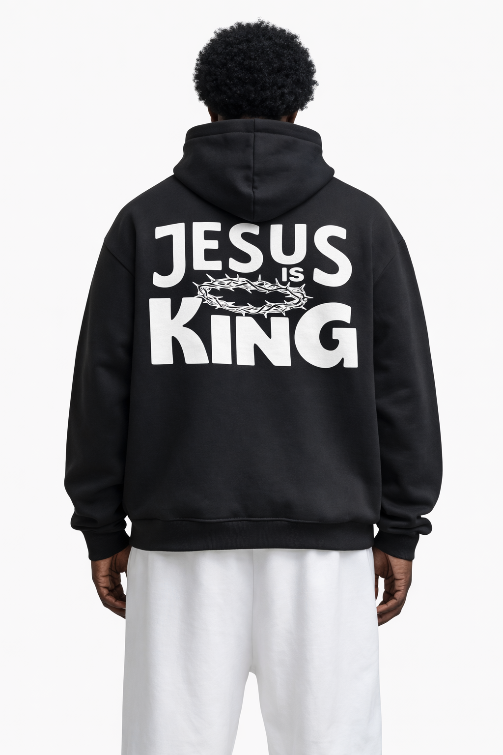 Met de krachtige tekst “Jesus Is King” draag je een duidelijke boodschap van geloof, kracht en identiteit. Meer dan alleen kleding – het is een statement van wie jij bent en waar je voor staat.