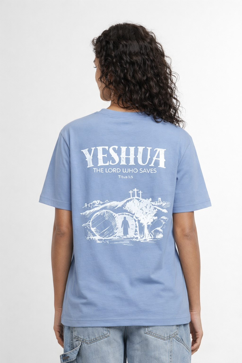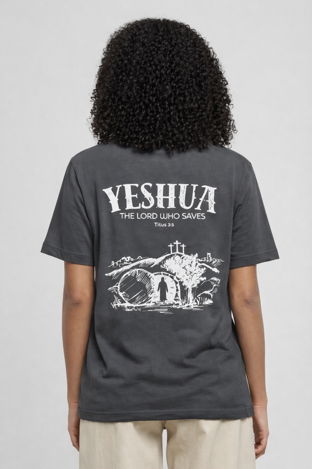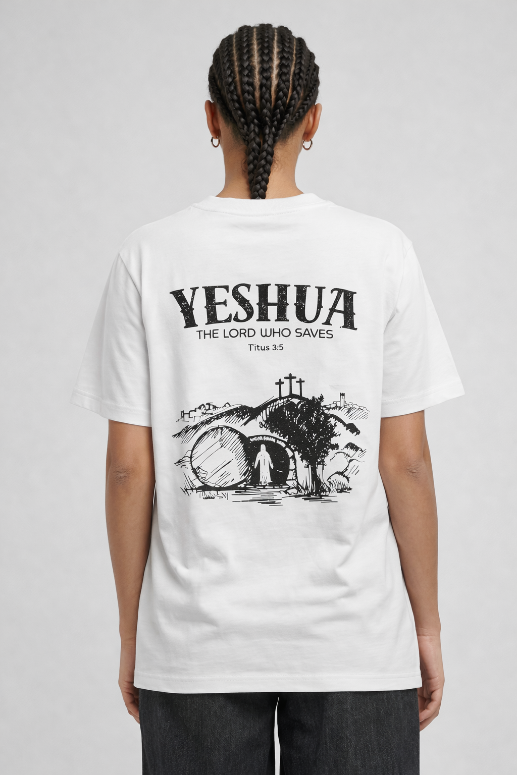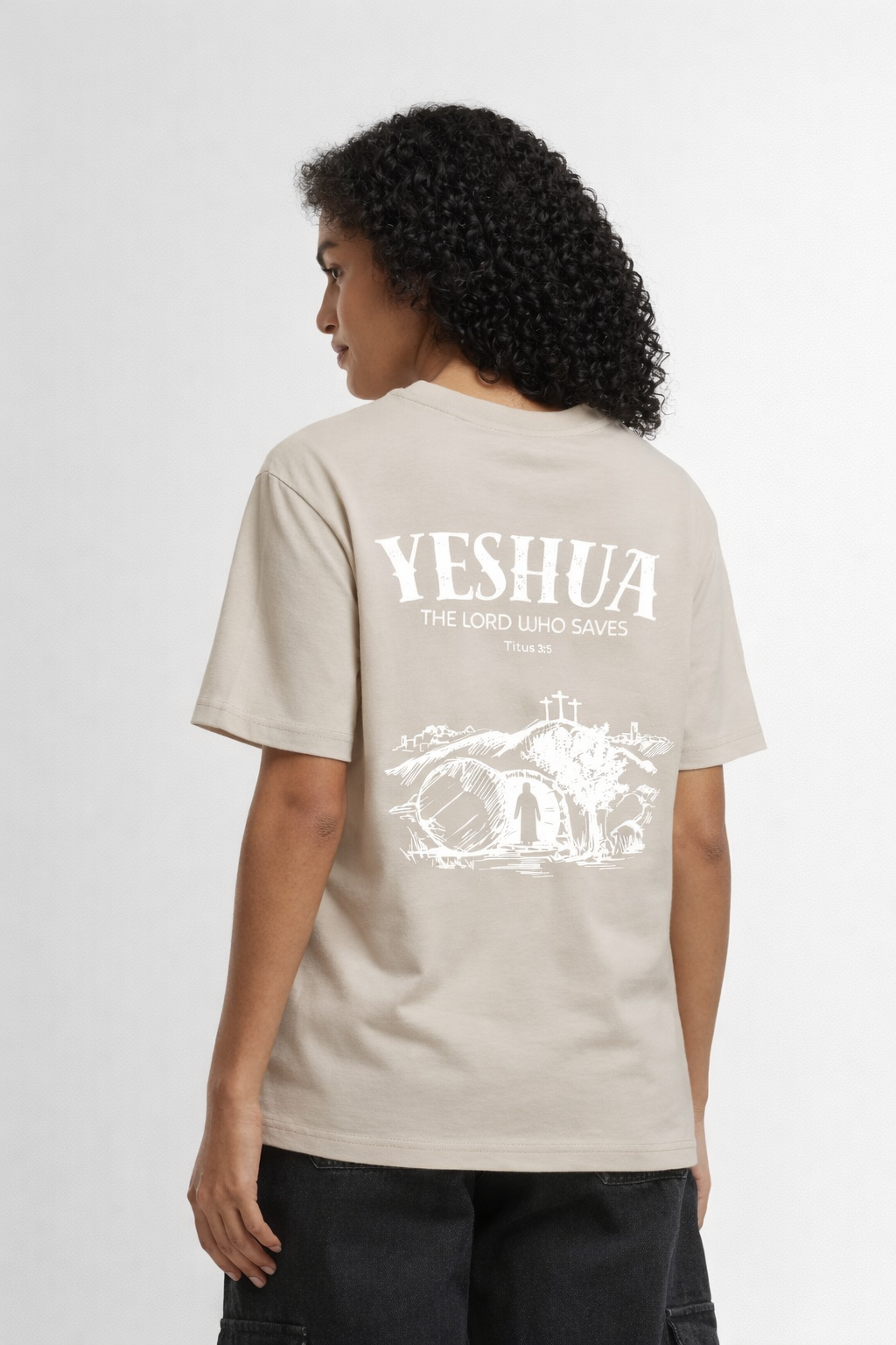 Ontdek de kracht van de naam “Yeshua” op dit bijzondere T-shirt. Yeshua, de Hebreeuwse naam voor Jezus, betekent “Verlosser.” Het ontwerp toont Jezus die uit het graf stapt, een krachtig symbool van overwinning op de dood en van hoop en redding voor iedereen die gelooft.