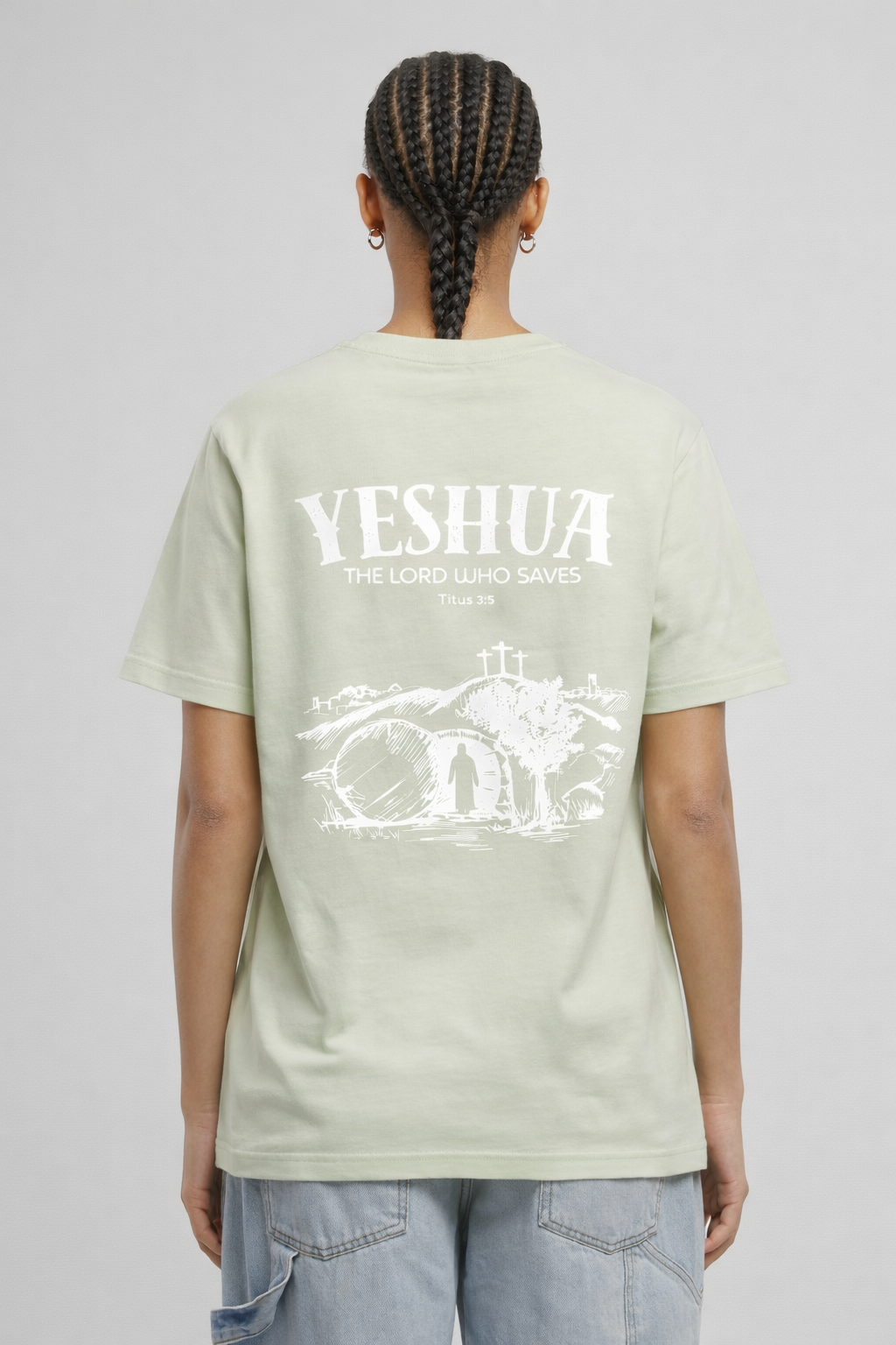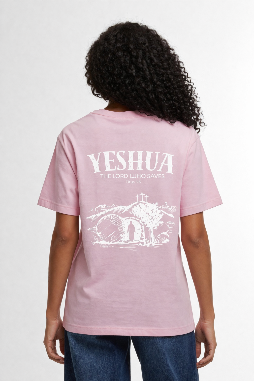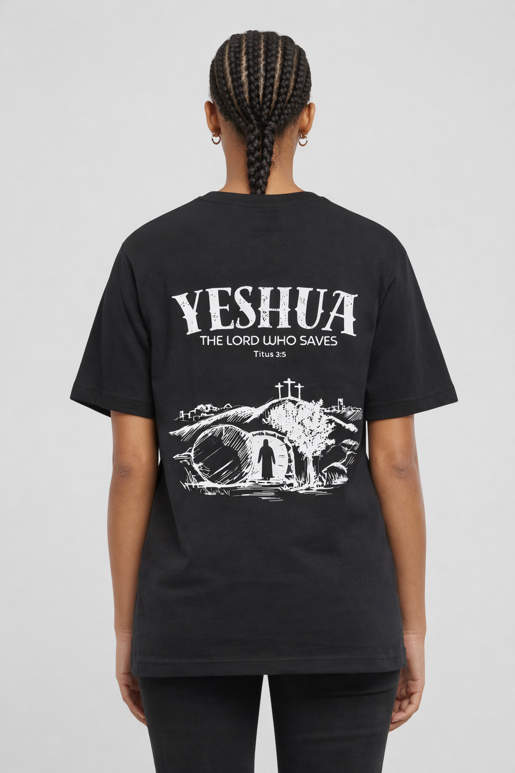 Ontdek de kracht van de naam “Yeshua” op dit bijzondere T-shirt. Yeshua, de Hebreeuwse naam voor Jezus, betekent “Verlosser.” Het ontwerp toont Jezus die uit het graf stapt, een krachtig symbool van overwinning op de dood en van hoop en redding voor iedereen die gelooft.