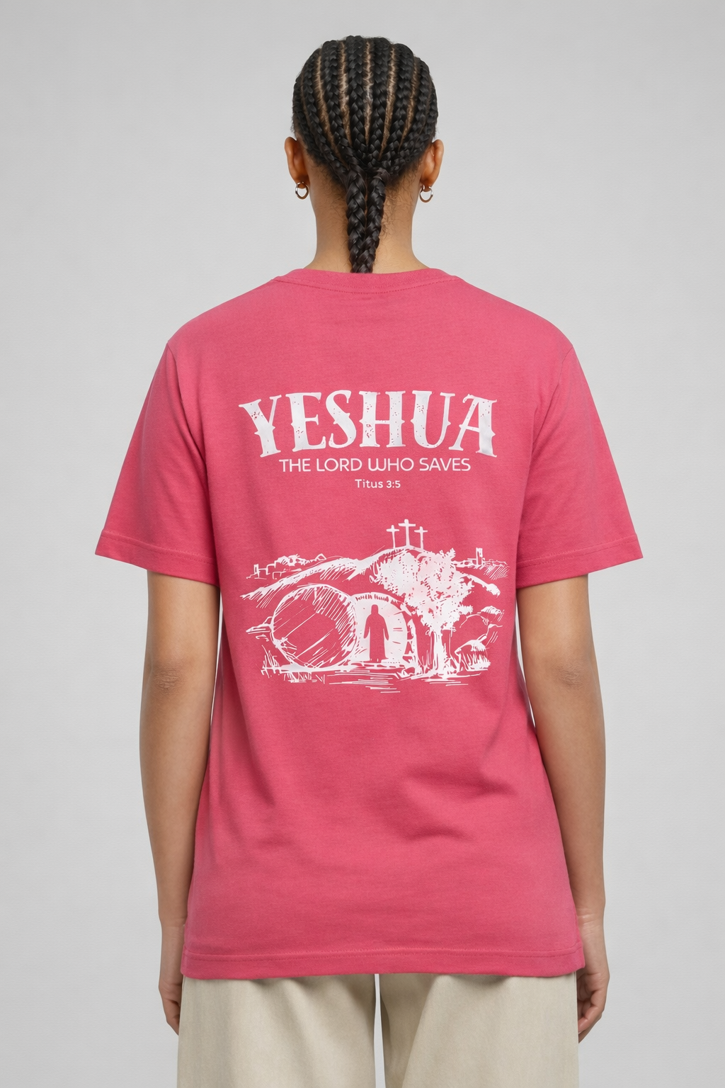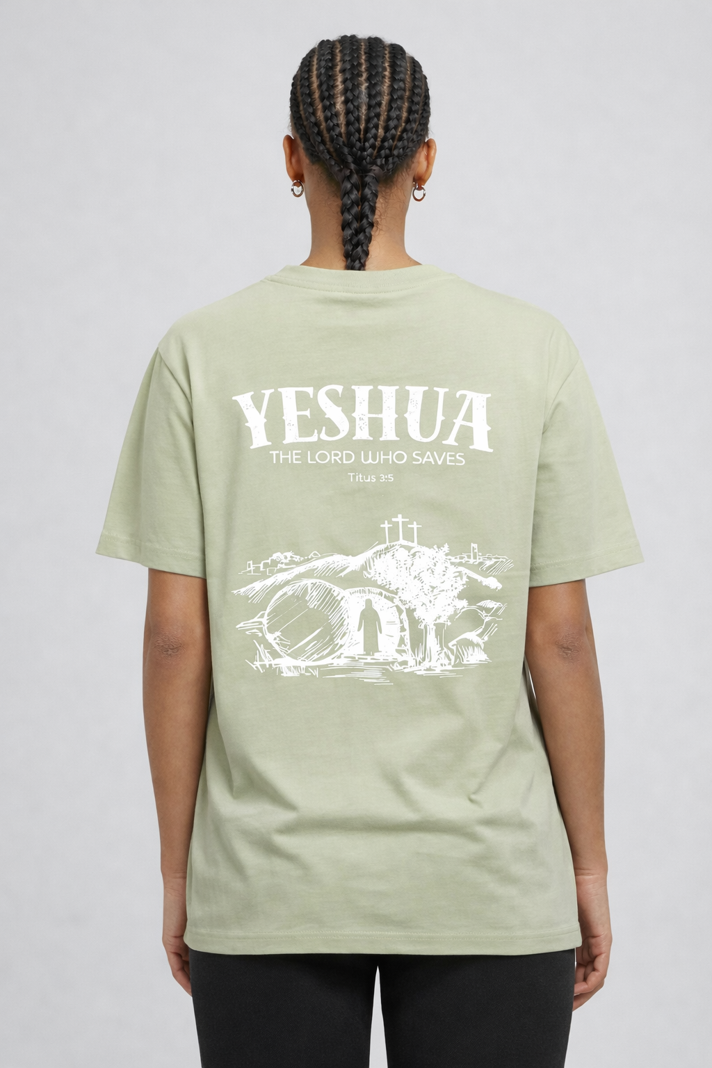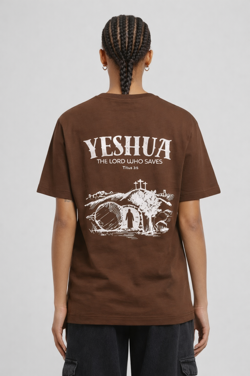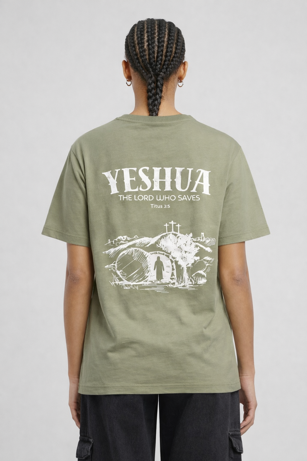 Ontdek de kracht van de naam “Yeshua” op dit bijzondere T-shirt. Yeshua, de Hebreeuwse naam voor Jezus, betekent “Verlosser.” Het ontwerp toont Jezus die uit het graf stapt, een krachtig symbool van overwinning op de dood en van hoop en redding voor iedereen die gelooft.